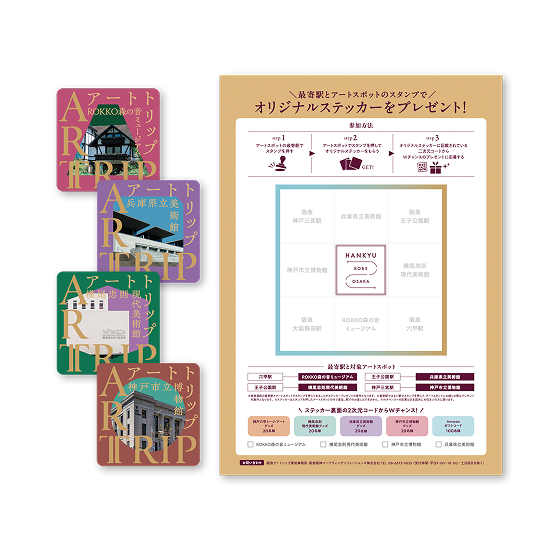 - 阪急電鉄の最寄駅とアートスポットでスタンプを押してあることがステッカープレゼントの条件となります。