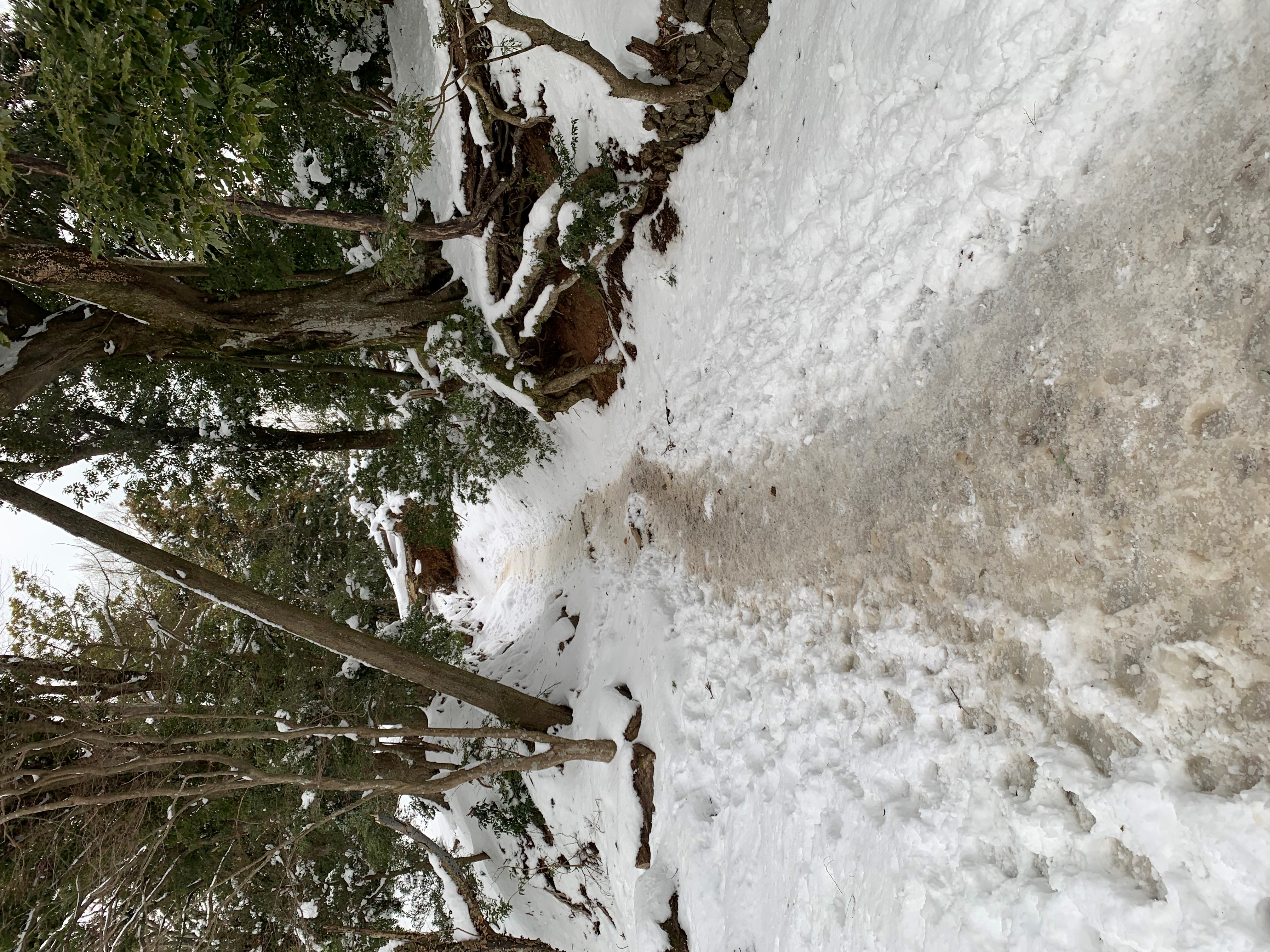 愛宕山ファンのみなさま、お待たせしました! 途中、雪道ではアイゼンを使用します。必ず事前に着用テストをお願いします。 白銀の愛宕神社で1年の「火の用心」を願い、みなさんで登頂の達成感を味わいましょう。 ※ Tシャツの引換はありません。 1月30日 下見時の積雪