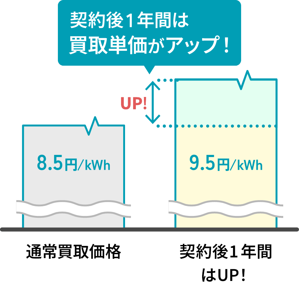 通知1通につき110円(消費税等相当額を含みます。)を上記によって算定された金額から差し引いたものといたします。 - 買取開始日から12ヶ月経過後の最初の検針分までの買取料金を1円/kWh割増しいたします。