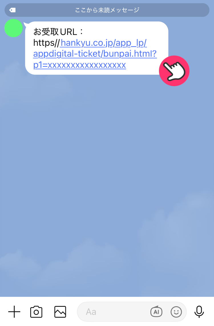 2LINEで連絡が届いた場合、トークの「お受取URL」をタップします。