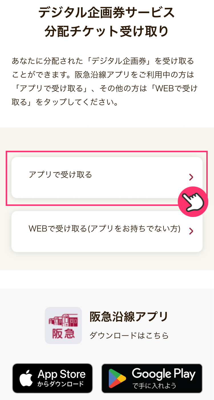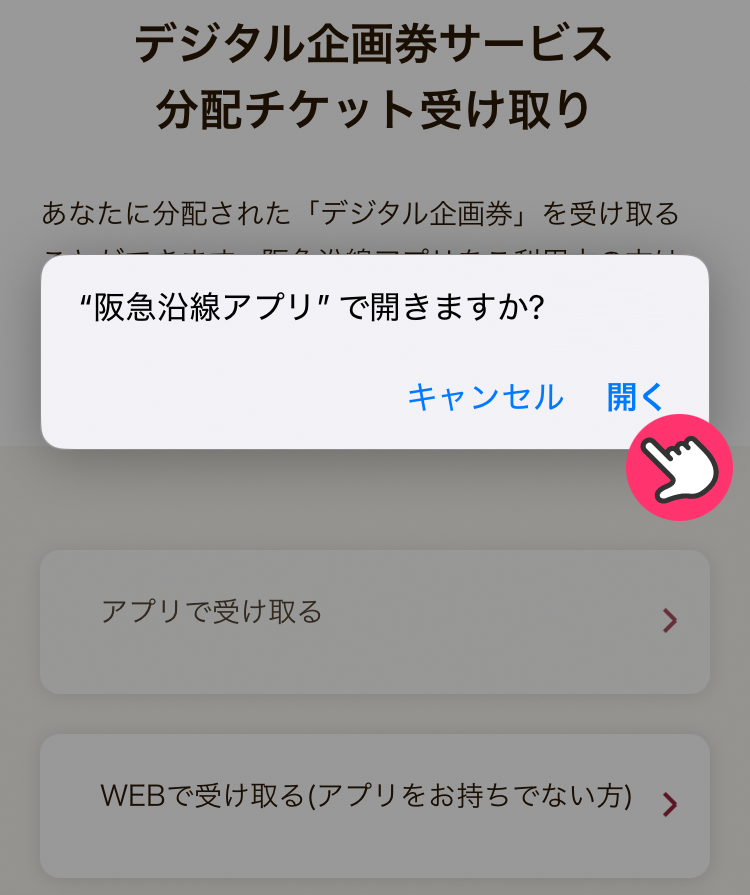 3「アプリで受け取る」をタップします。