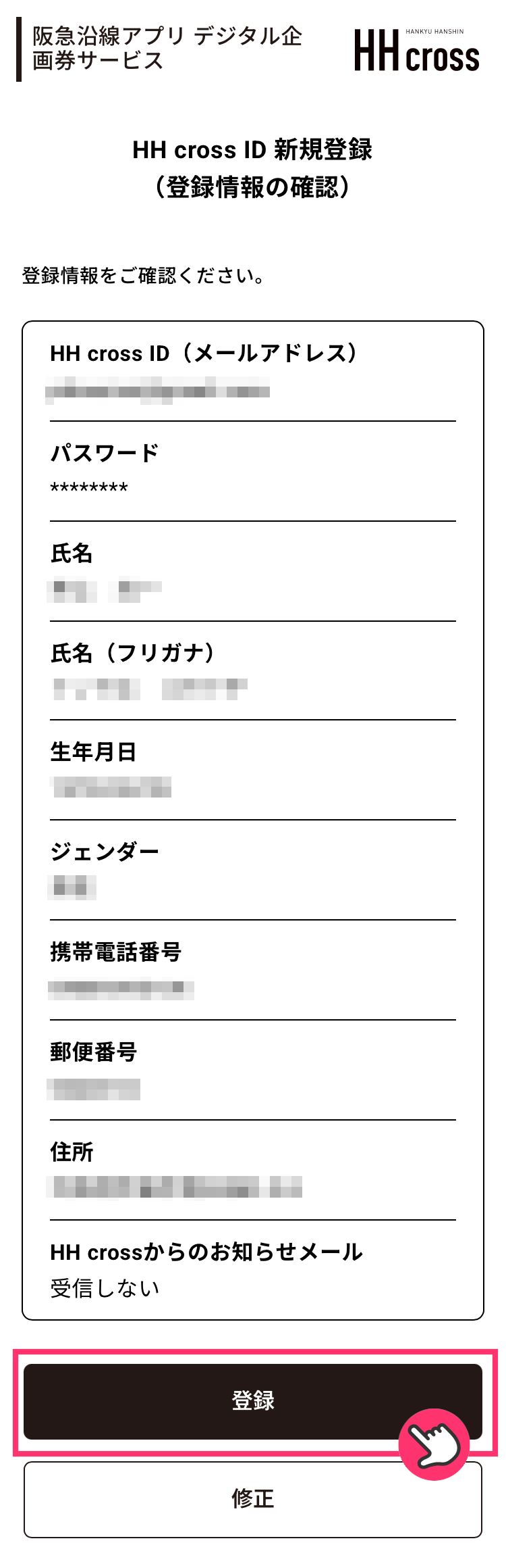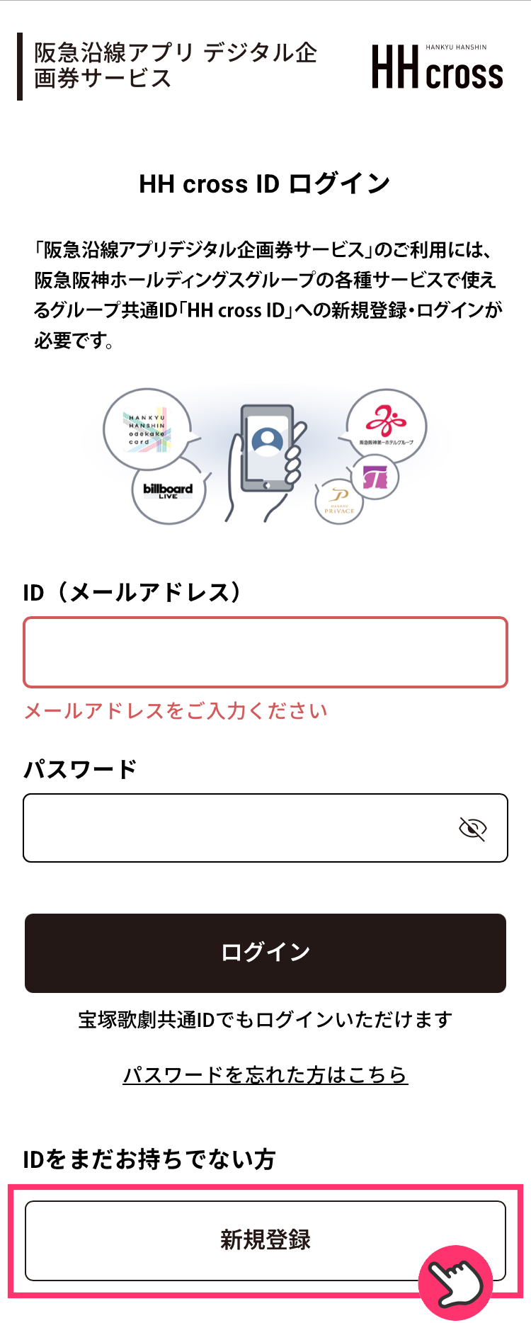 4「HH cross IDログイン」ページの「新規登録」をタップします。