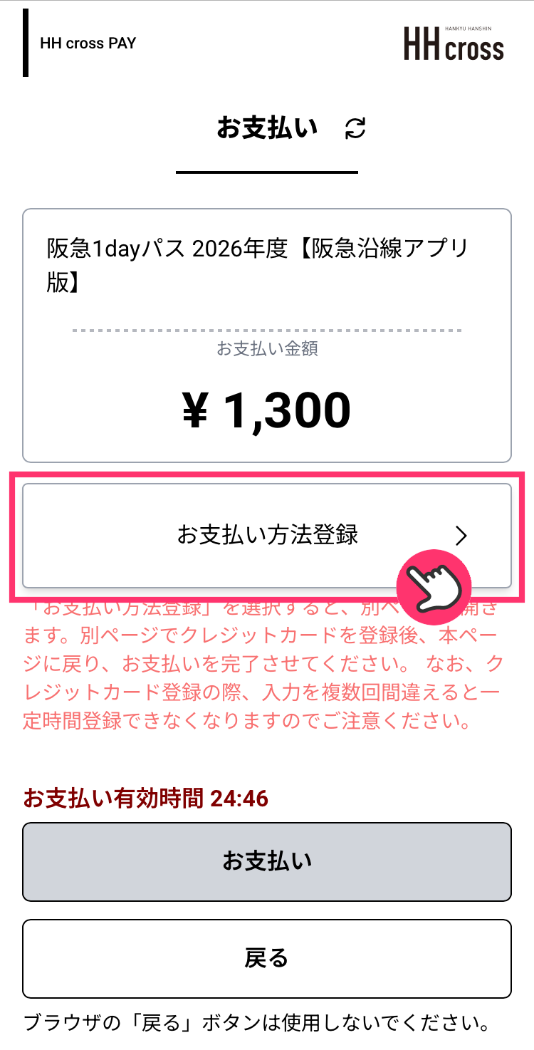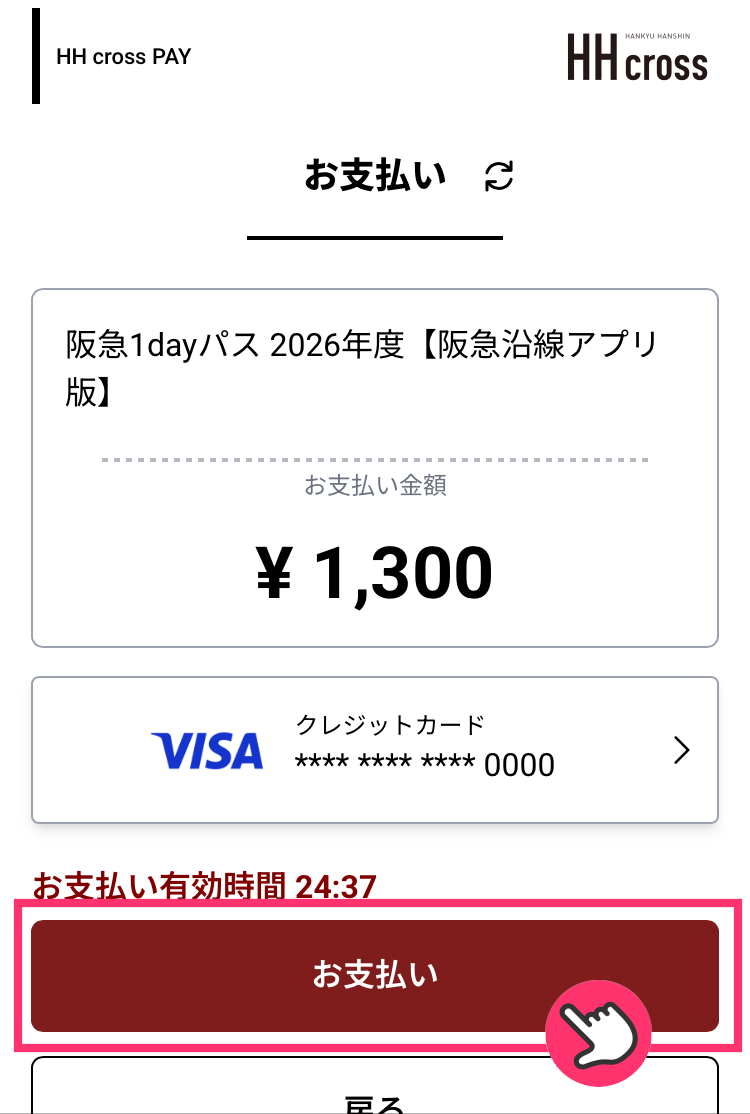 18カードが登録されている事をお確認し、「お支払い」をタップします。