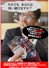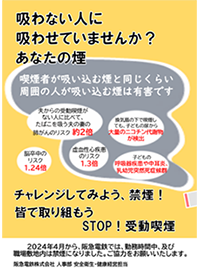 全従業員への教育・啓発として、各職場に禁煙ポスターを掲示しています。ポスターには当社従業員をモデルとして起用し、身近に感じてもらえるよう工夫しています。