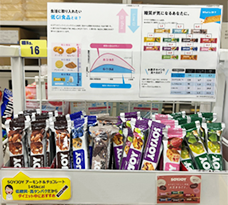 生活習慣病の発症および重症化予防には健康な食習慣獲得が欠かせないことから、社員食堂において栄養表示を行うほか、管理栄養士おすすめのヘルシーメニューを導入しています。また、運輸の現場にて導入されている現場給食においても、カロリーや塩分量を抑え、必要な栄養素を含んだヘルシーメニュ―を導入しています。さらに購買所では、健康的な補食や間食を促す資料を掲示しています。