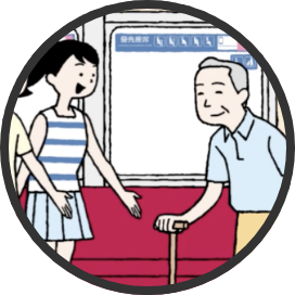 お年寄り、身体の不自由な方、妊婦の方、小さなお子様をお連れの方には座席をお譲りください。