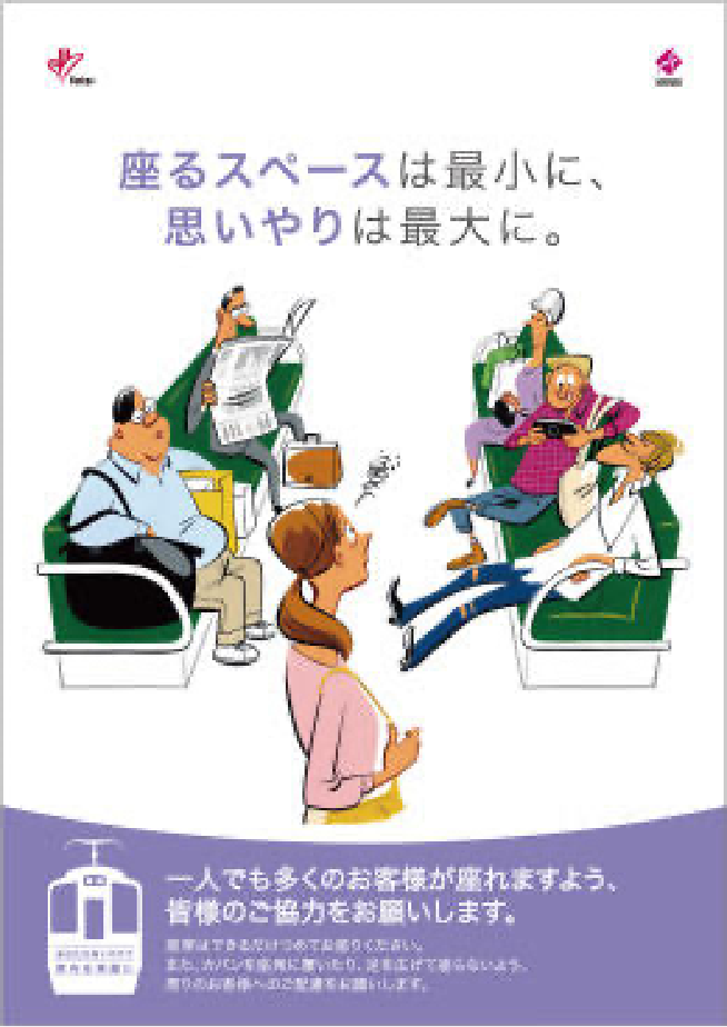 一人でも多くの方に座席をご利用いただけるよう、座り方にはご配慮ください。